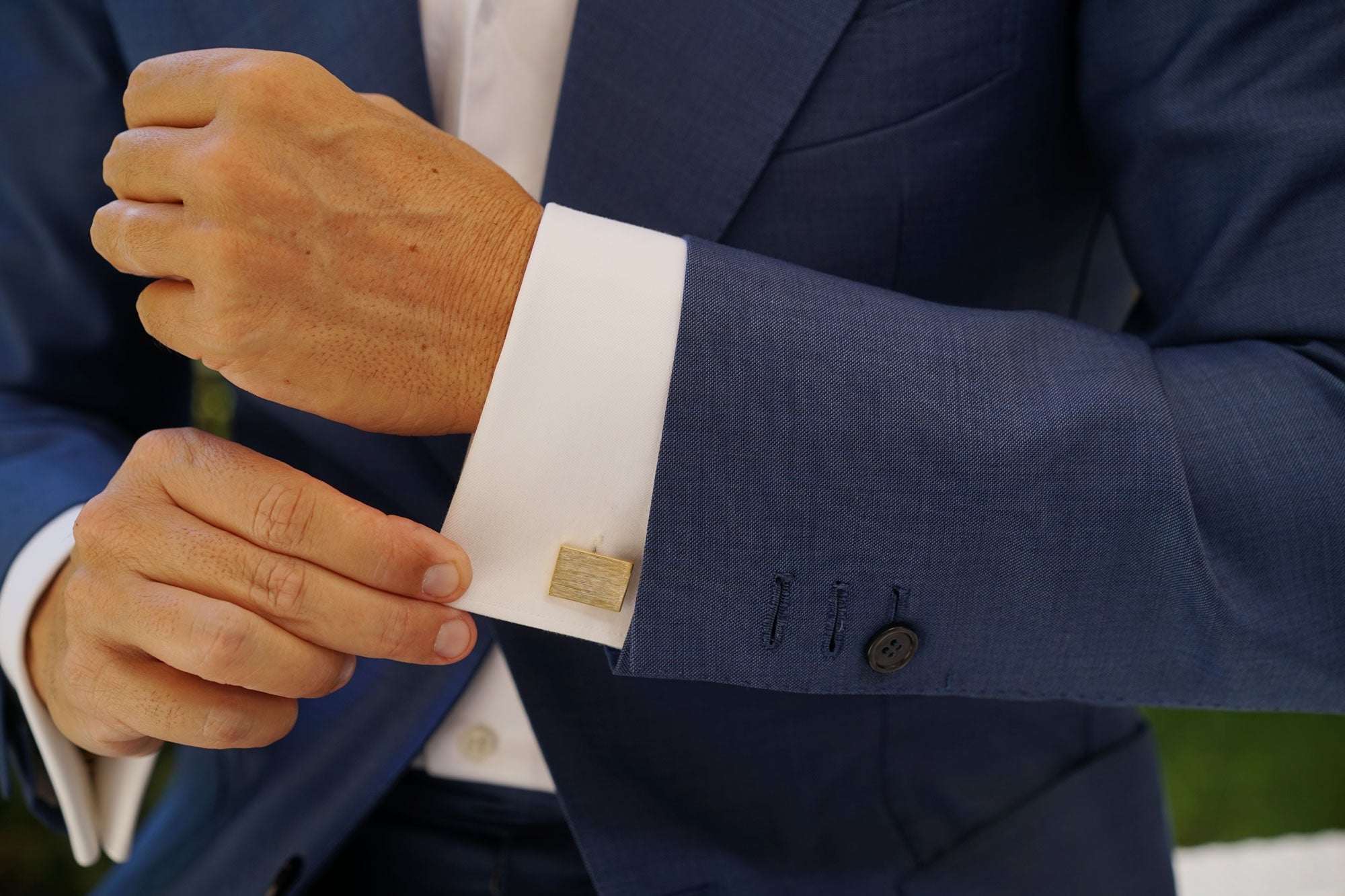 Classic Gold Rectangle Cufflinks | Men Elegant Brushed Cuff Links | OTAA