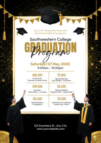 Commencement Exercises Graduation Program in Gold and Black Classic and ...