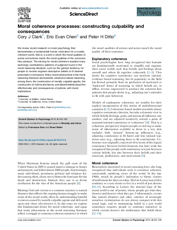 (PDF) Moral coherence processes: constructing culpability and consequences