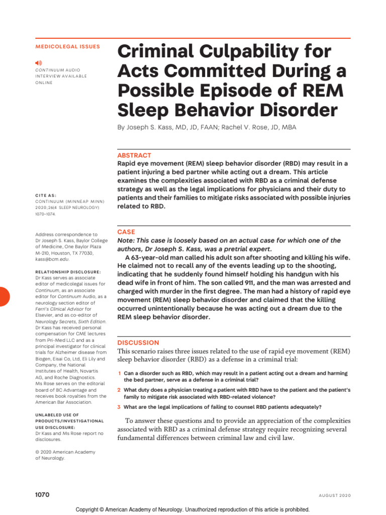 Criminal Culpability For Acts Committed During A Possible Episode of ...
