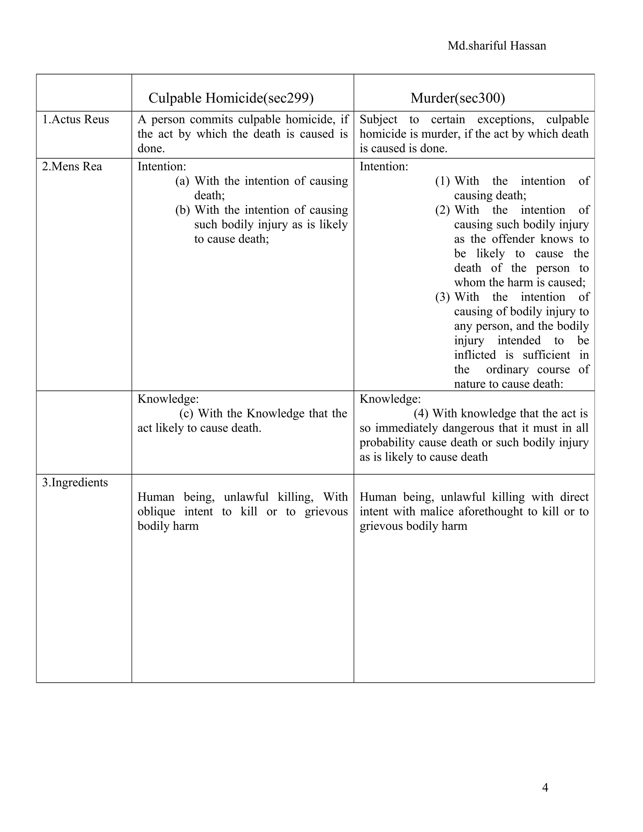 Criminal law :Culpable homicide & Murder: | DOC