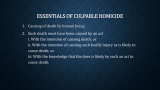 Culpable Homicide and Murder Presentation | PDF | Murder | Homicide
