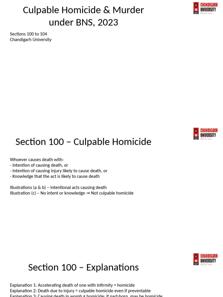 Culpable Homicide and Murder BNS Presentation | PDF