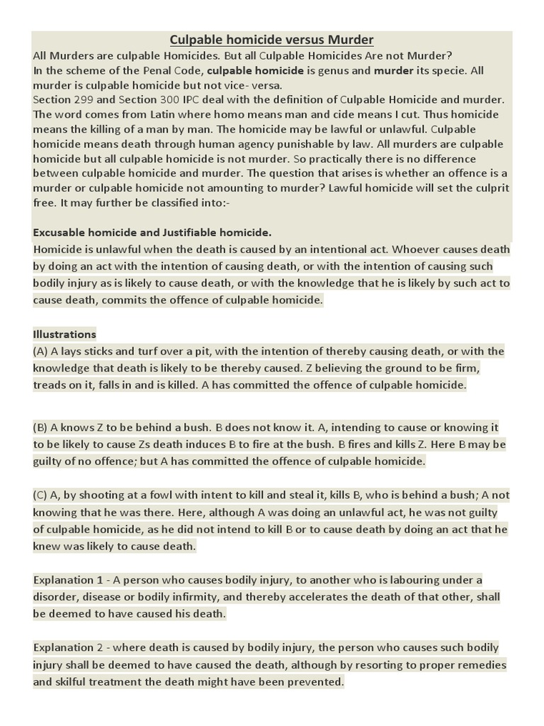 Difference Between Murder and Culpable Homicide | PDF | Malice ...