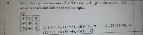 Solved 8 Print the cumulative sum of a 2D array in the given | Chegg.com