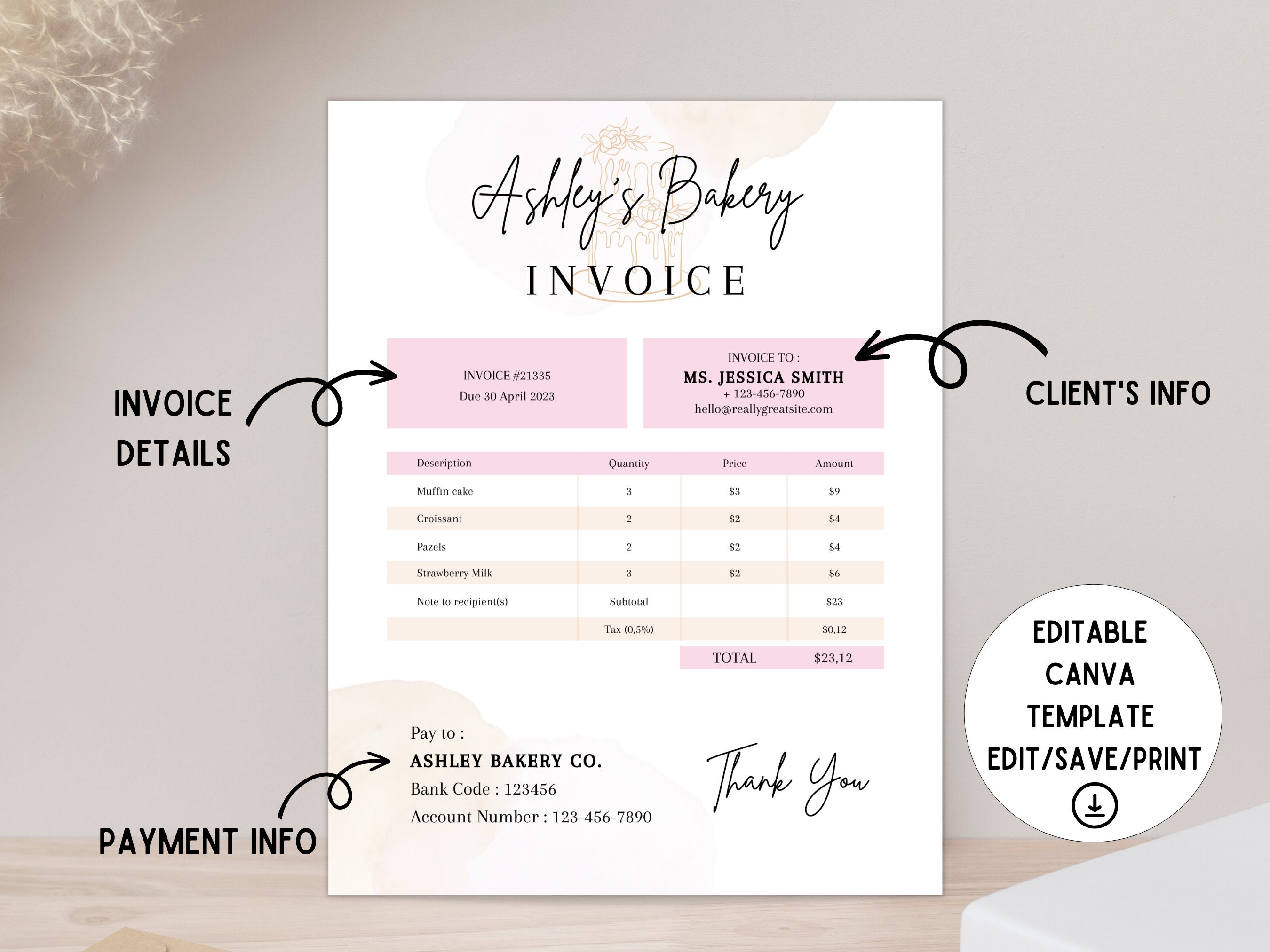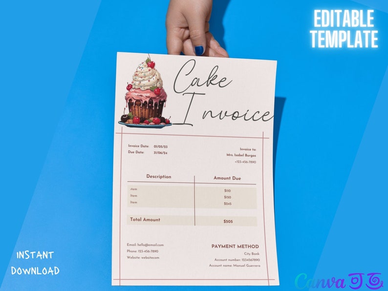 Bakery Invoice Template – Editable Canva Billing Form for Custom Cakes ...
