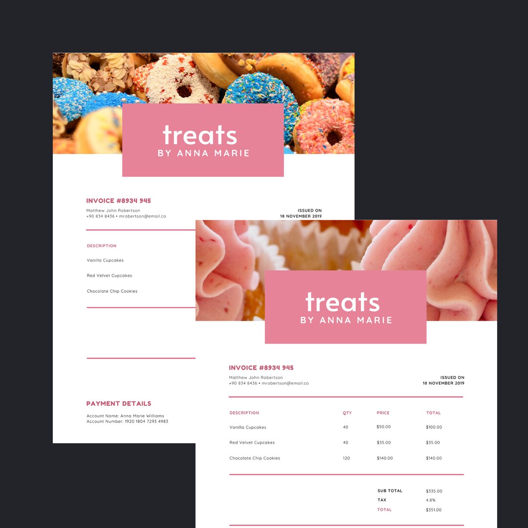 Sweet Treats Invoice Template | Bakery Template | Cake Business Invoice ...