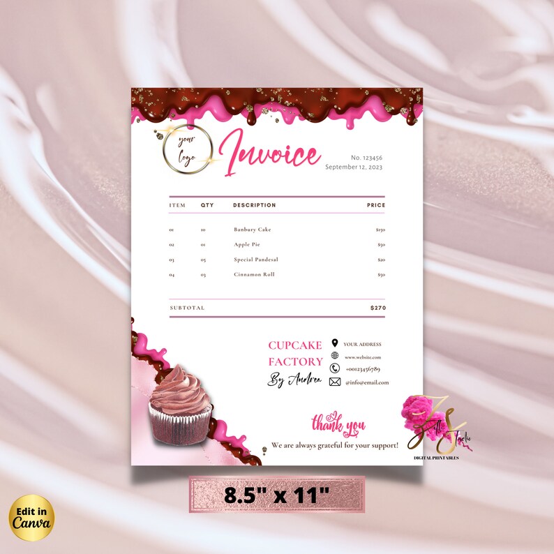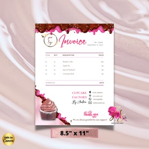 Bakery Cupcake Cake Invoice Template, Canva Editable Invoice, Small ...