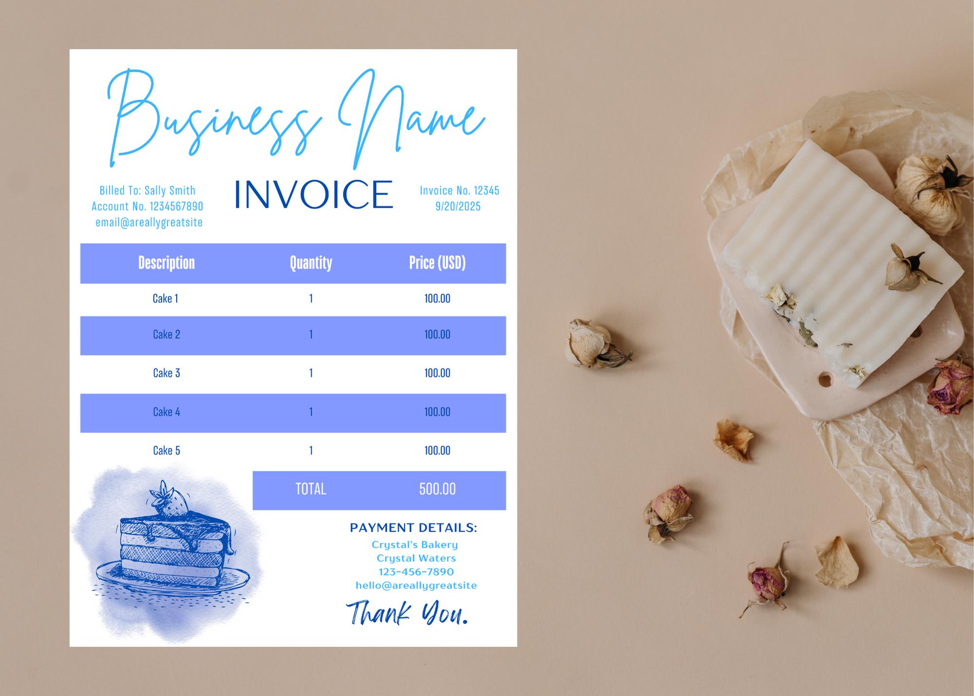 Editable Bakery Invoice Template Baking Invoice Cake Invoice Form Cake ...
