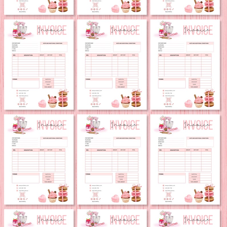 Pink Bakery Invoice Template Converts to Word File Instant | Etsy