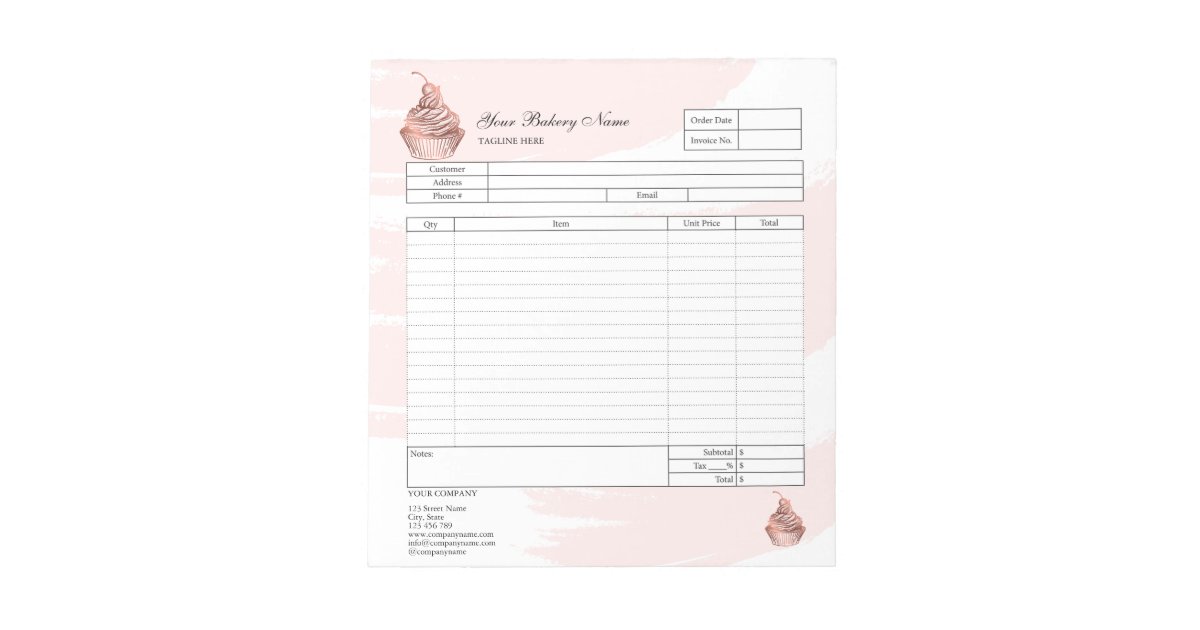 Bakery Invoice Sales Form Receipt Pastry Cupcake Notepad | Zazzle