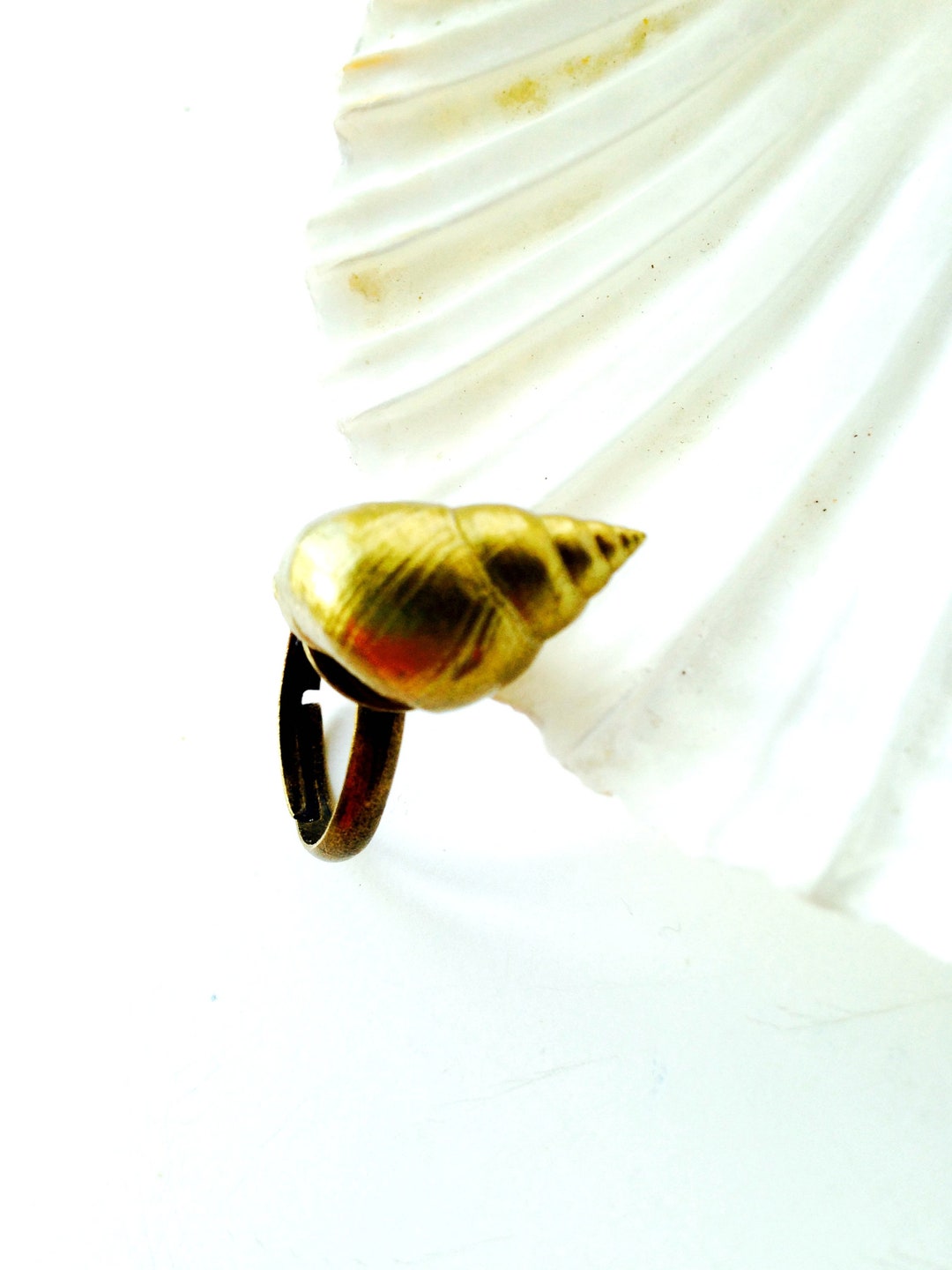 Ring With Shell CURAÇAO Hand Painted Natural Gold Shell Bronze Band ...