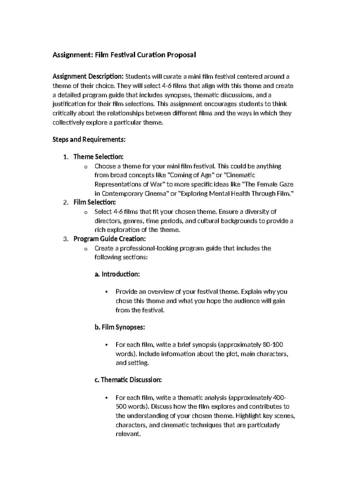 FTA005 - Assignment - Assignment: Film Festival Curation Proposal ...