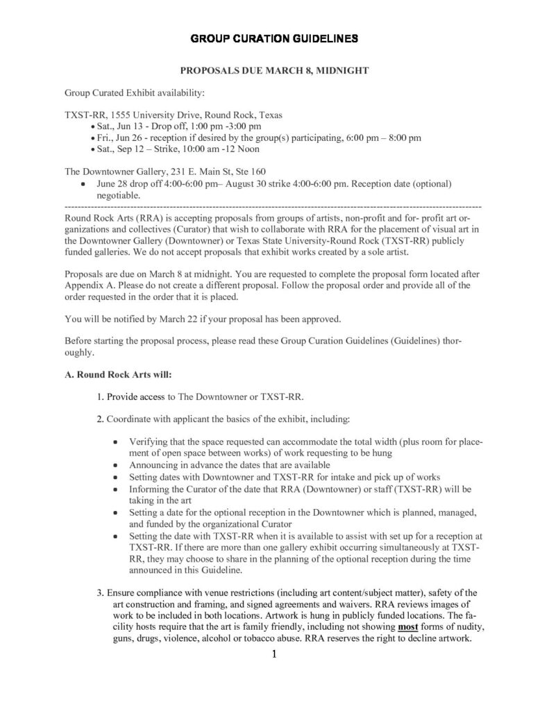 Proposal process and form for group curated shows 2020 - Round Rock Arts