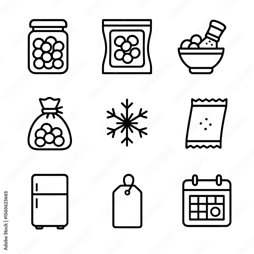 Roe Preservation Icons. Outline icon set of roe preservation methods ...