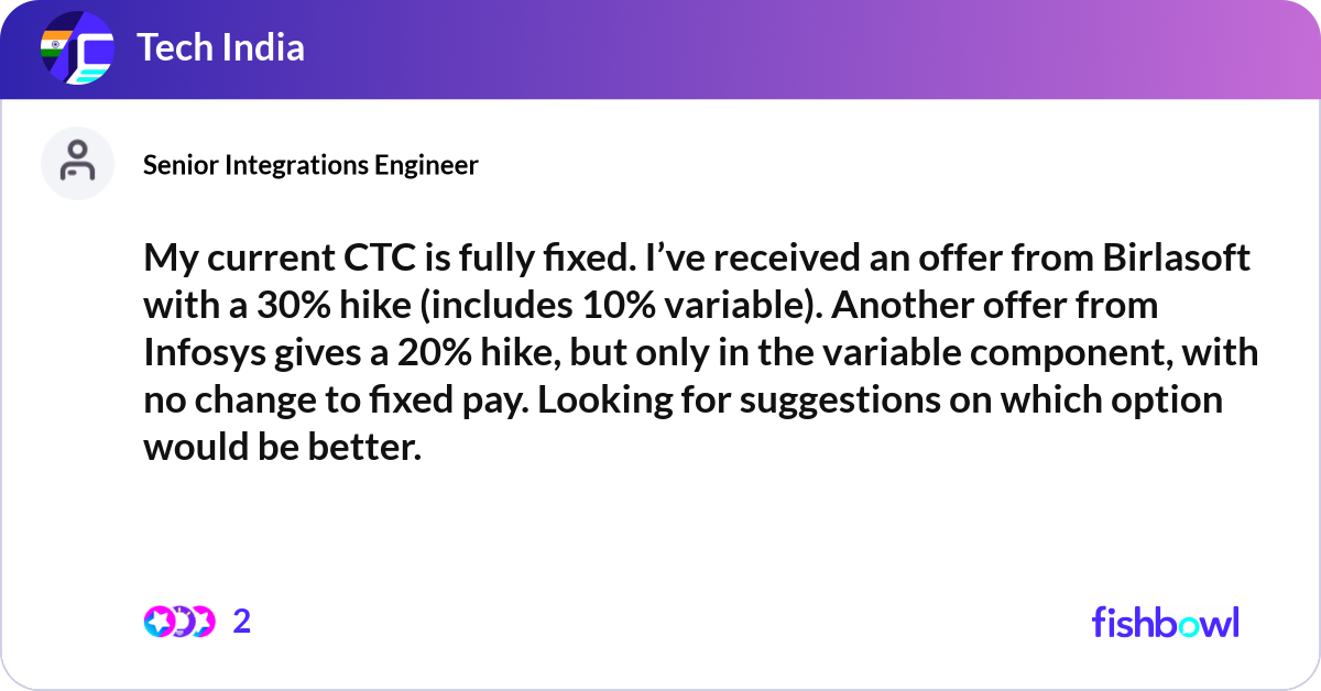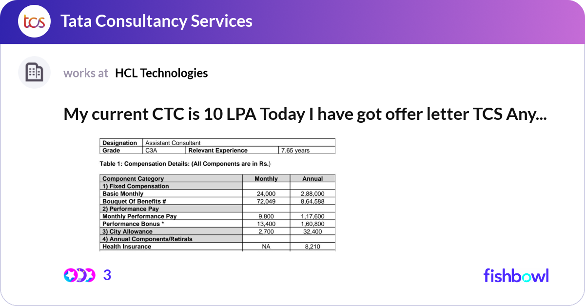 My current CTC is 10 LPA Today I have got offer le... | Fishbowl