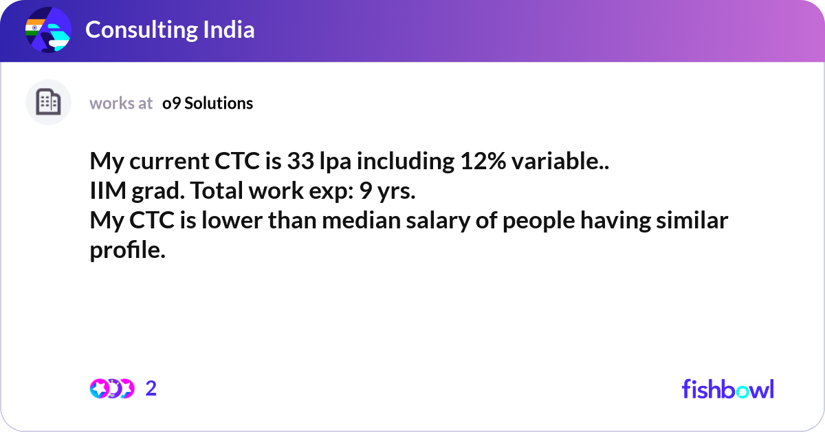 My current CTC is 33 lpa including 12% variable.. ... | Fishbowl