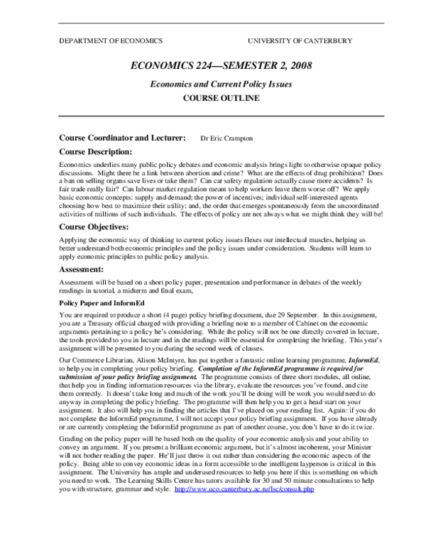 (PDF) Economics and Current Policy Issues COURSE OUTLINE