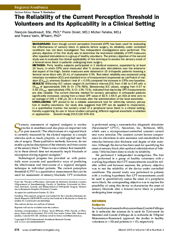 (PDF) The reliability of the current perception threshold in volunteers ...