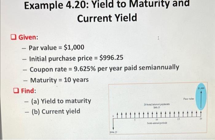 Solved Example 4.20: Yield to Maturity and Current Yield 1 | Chegg.com