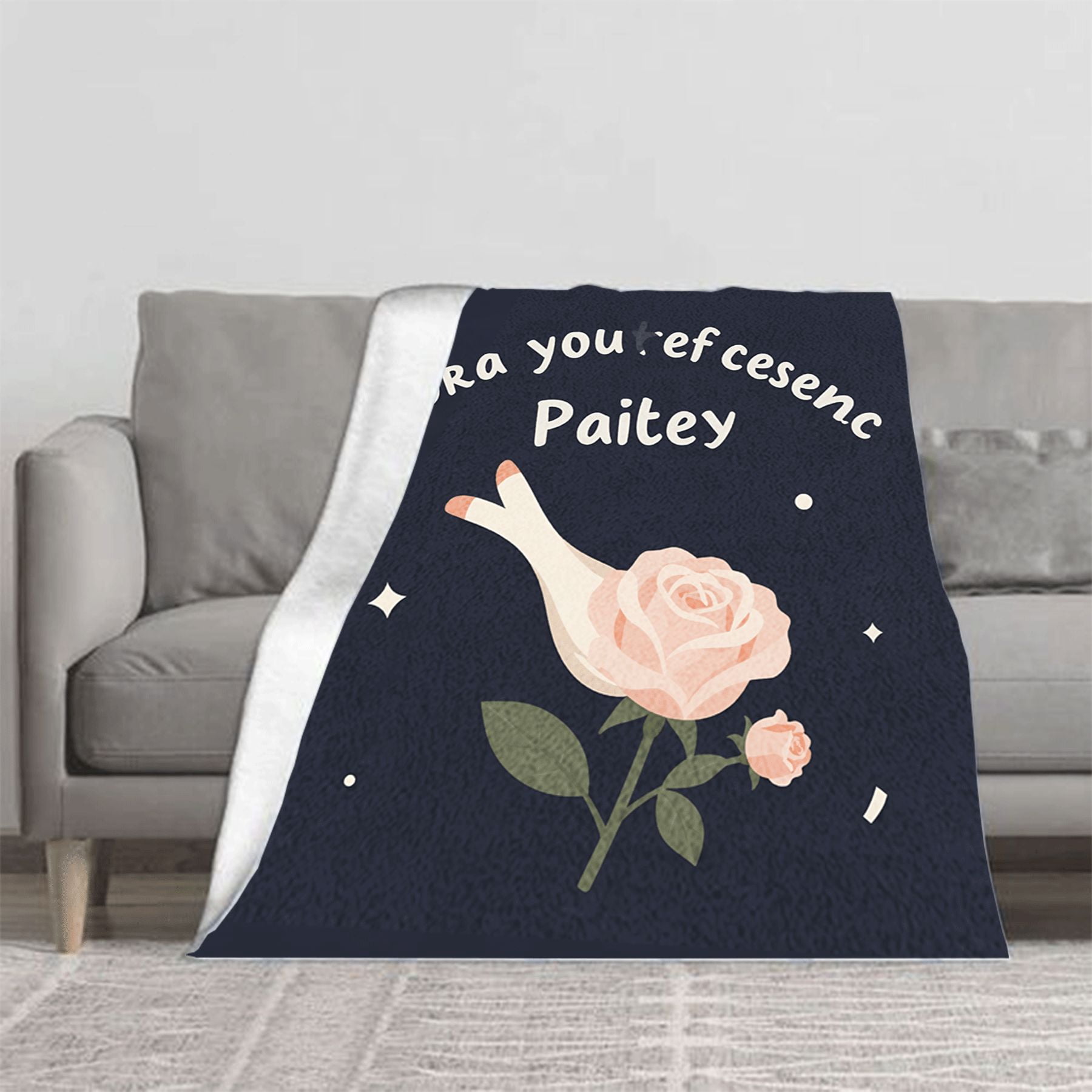 Cozy Flannel Blanket with Elegant Cursive Design & Whimsical Rose ...