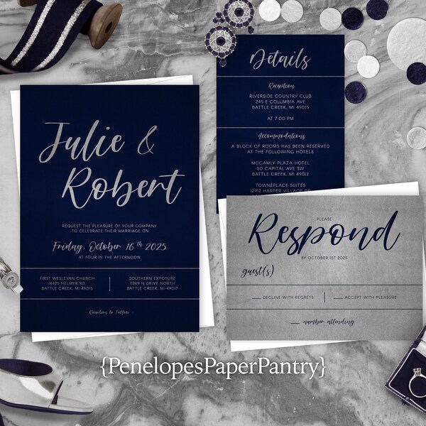Simple Cursive Wedding Invitation Set | Etsy | Wedding invitation sets ...