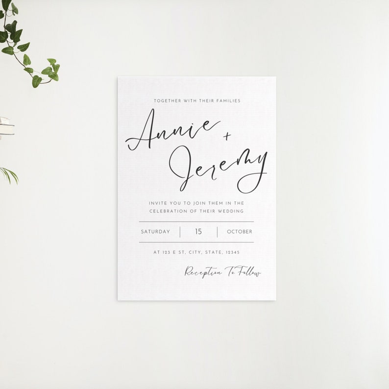 Editable Simple Wedding Invitation, Minimalist Cursive Wedding Invite ...