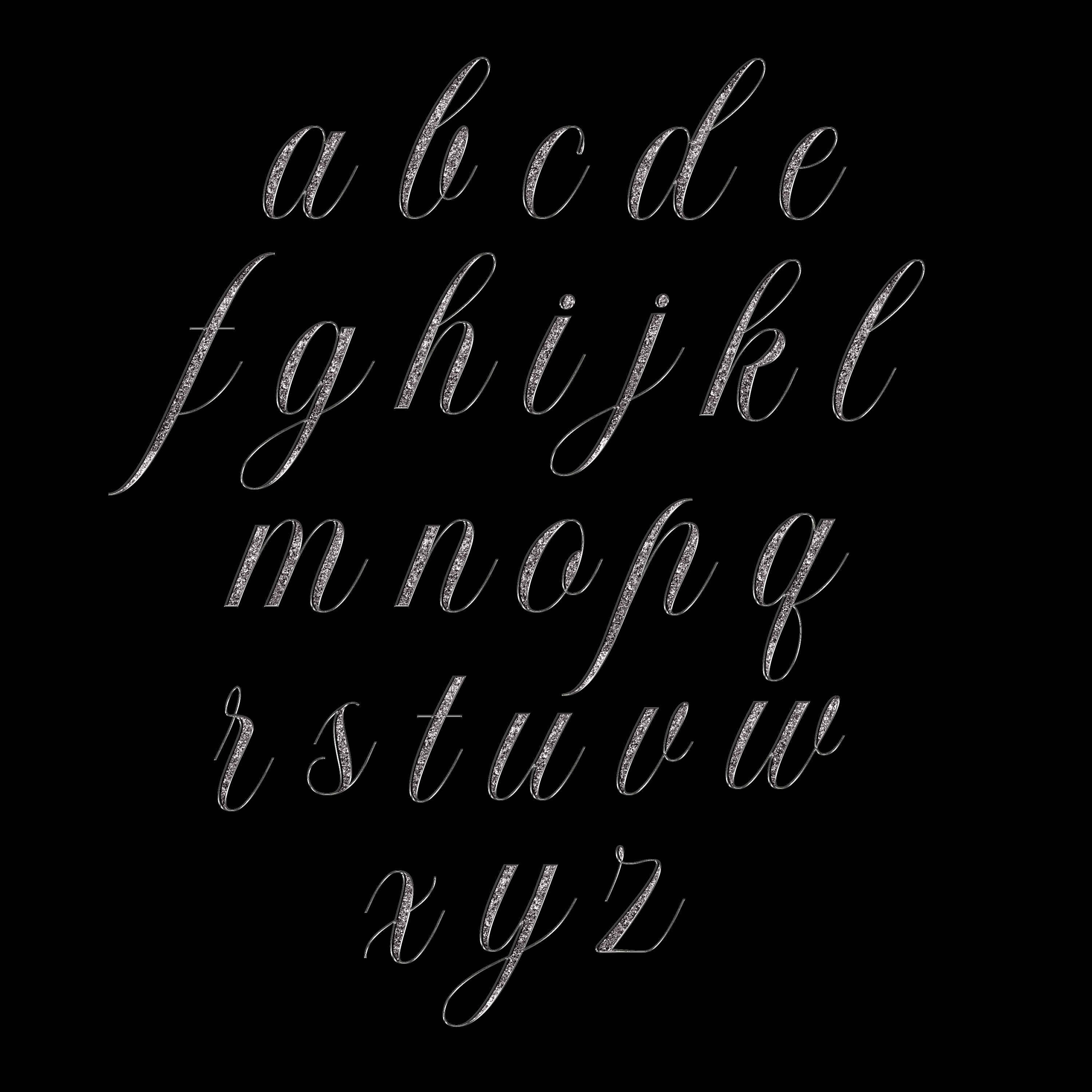 SILVER Calligraphy Font Cursive Letters ALPHABET Digital Clipart ...