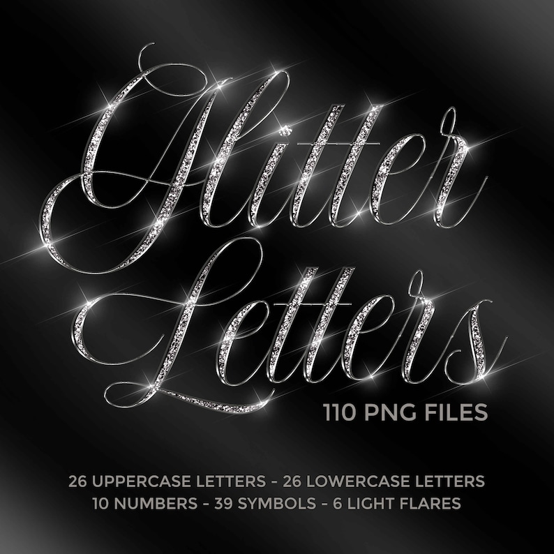 GLITTER SILVER ALPHABET Digital Clipart: Letters, Numbers, Symbols ...