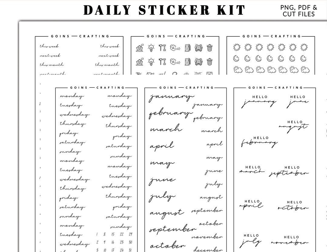 Daily Functional Sticker Kit Cursive, Hobonichi Stickers, Minimal ...