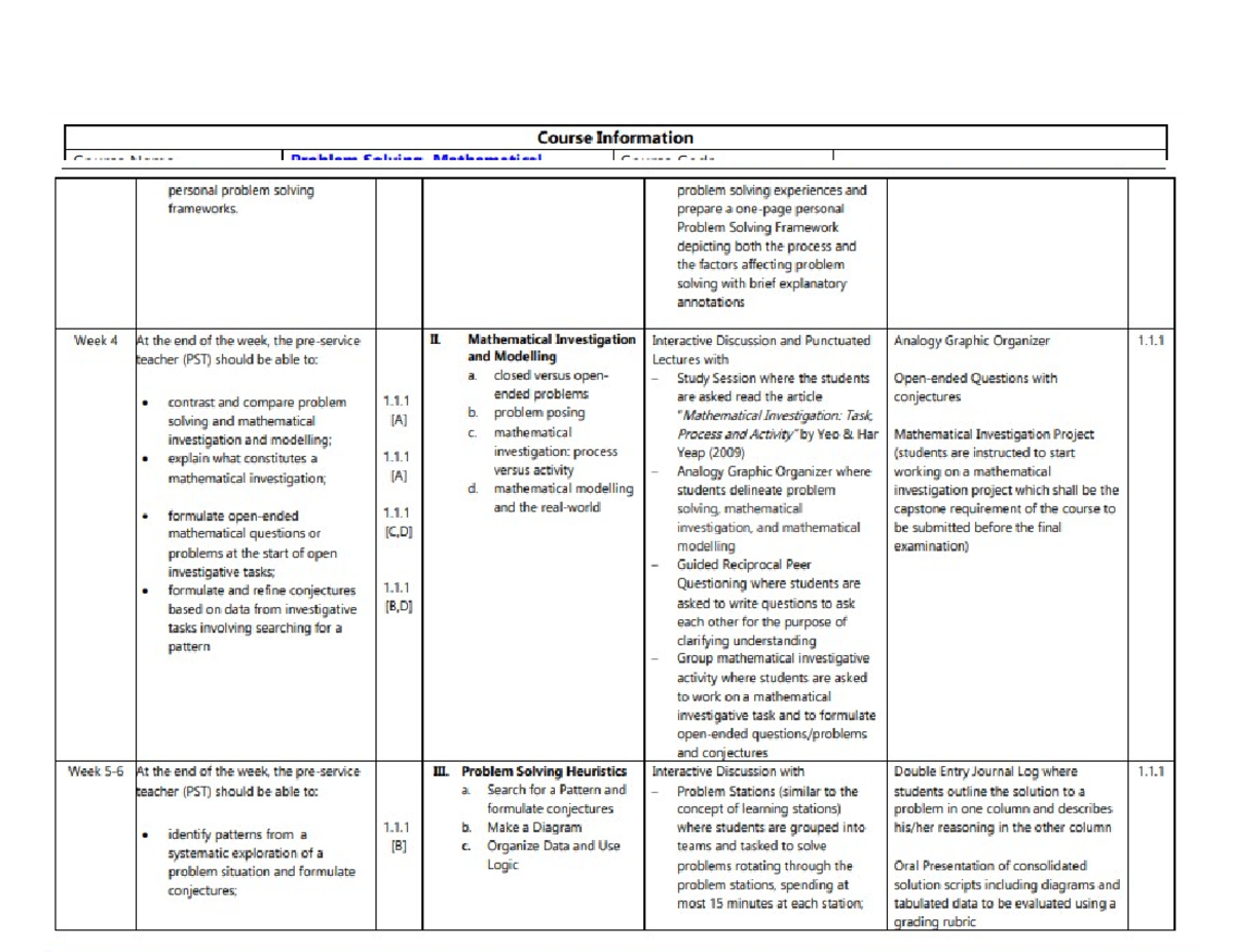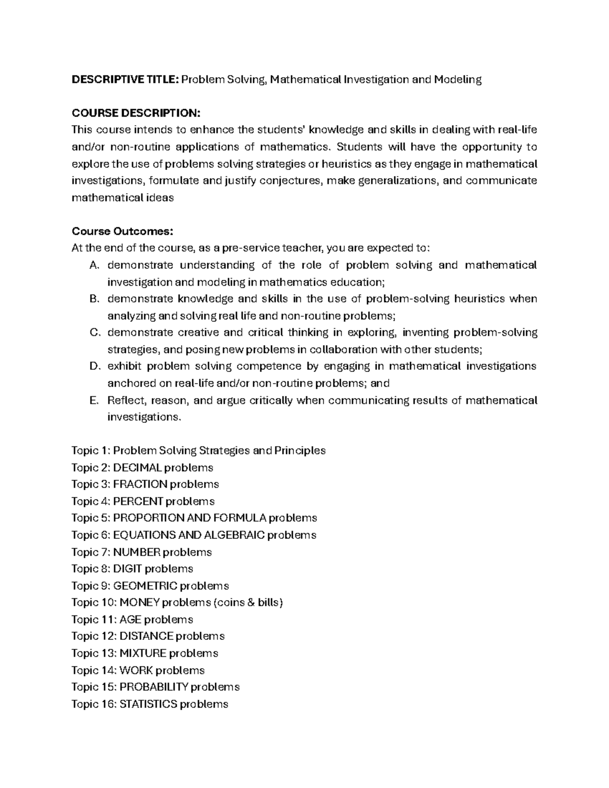 Problem Solving-Mathematical Investigations-Modeling Course Outline ...