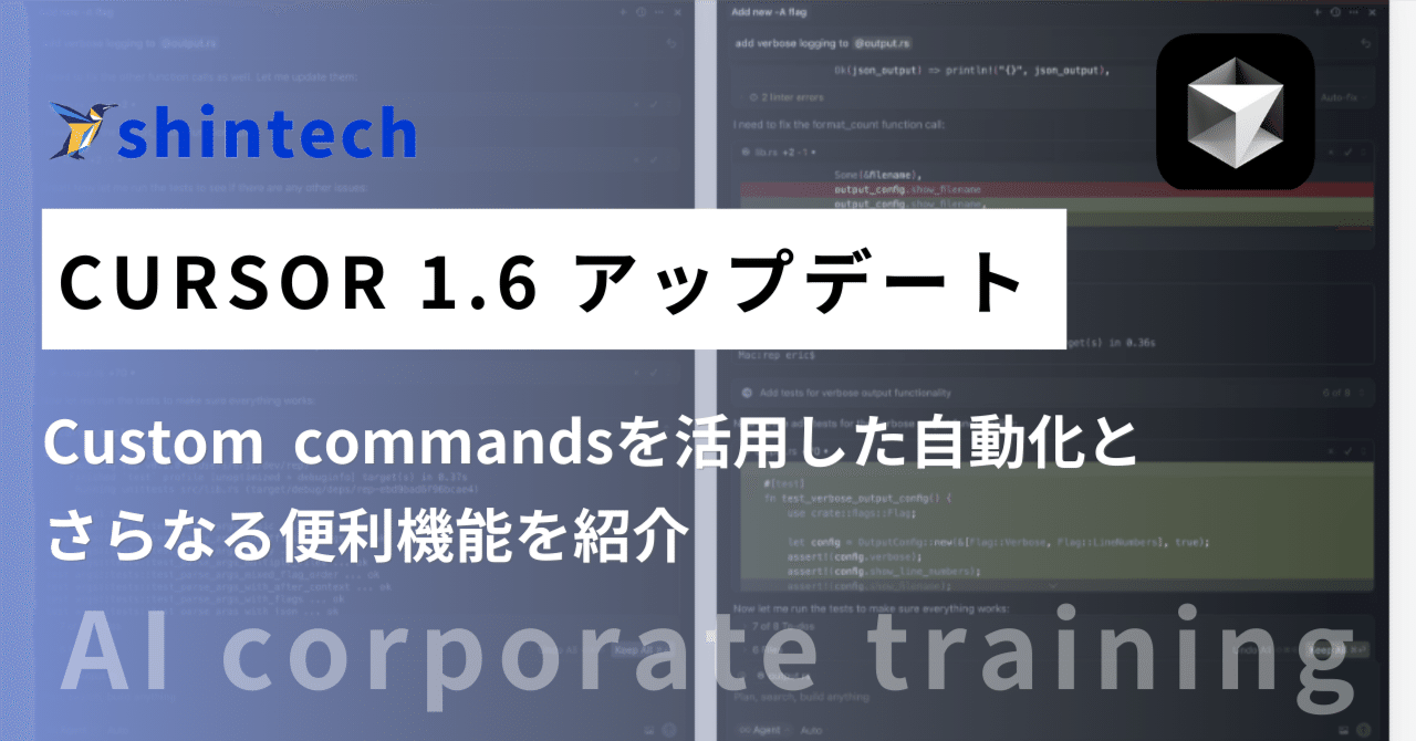 【Cursor1.6】最新アップデートで活用できる便利機能commandsとは?|江頭伸太郎|株式会社shintech