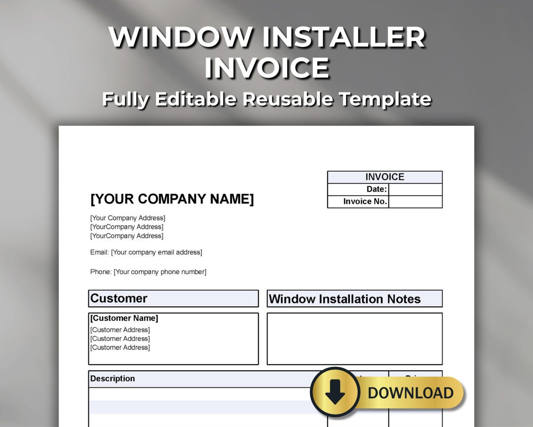 Window Installation Invoice Template – Editable Billing Form – Fillable ...