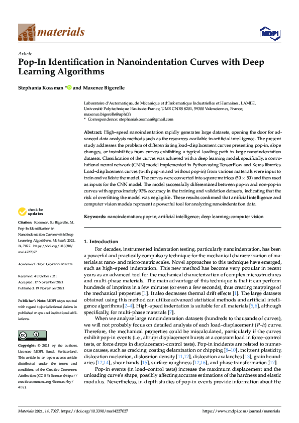 (PDF) Pop-In Identification in Nanoindentation Curves with Deep ...