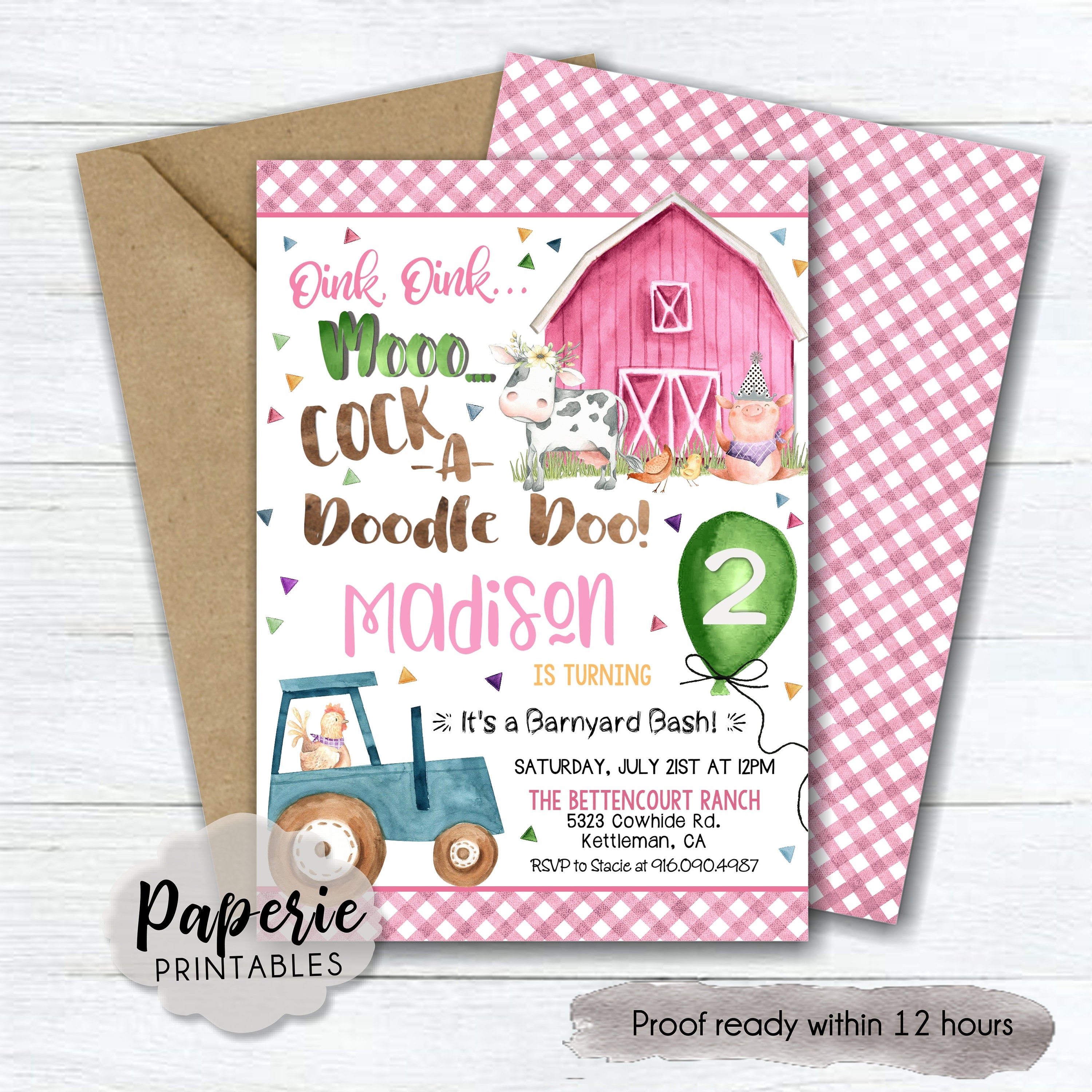 Pink Barn Birthday Invitation, Farm Birthday Invitation, 2nd Birthday ...