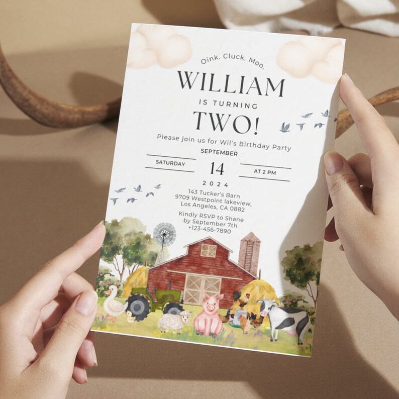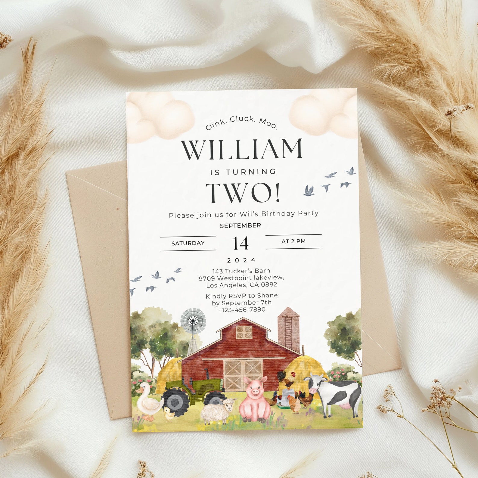 Barn Birthday Invitation, Farmer Invitation, Animals, Editable, Digital ...