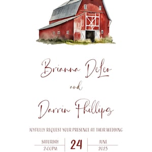 Watercolor Rustic Red Farm Barn Wedding Invitation Template | DIY ...
