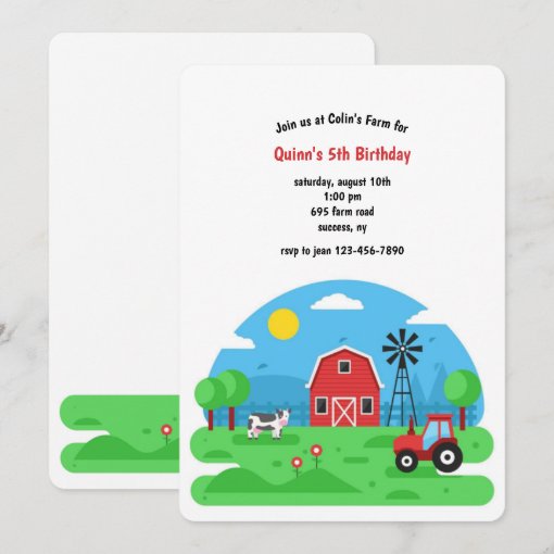 Red barn blue tractor farm farmyard birthday invitation – Artofit