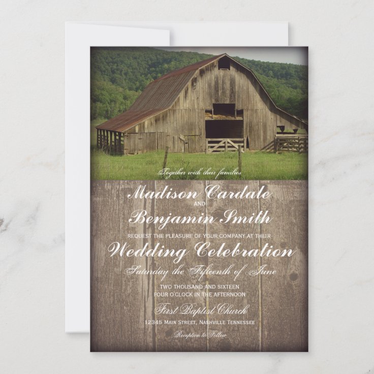 Rustic Country Barn Wood Wedding Invitations | Zazzle