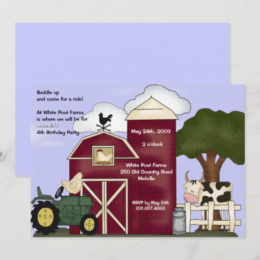 Tractor Farm Birthday Party Animals Barn Invitation | Zazzle