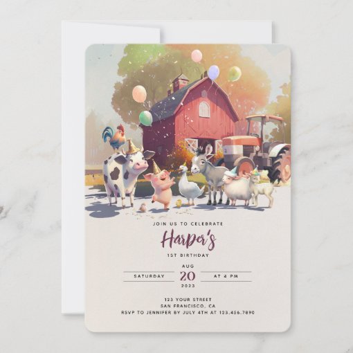 Farm Modern Birthday Invitation Barn Animals Party Invite - Etsy
