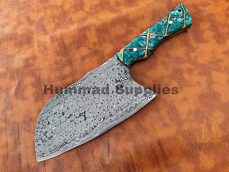 Custom handmade damascus steel chef s cleaver with colored micarta ...