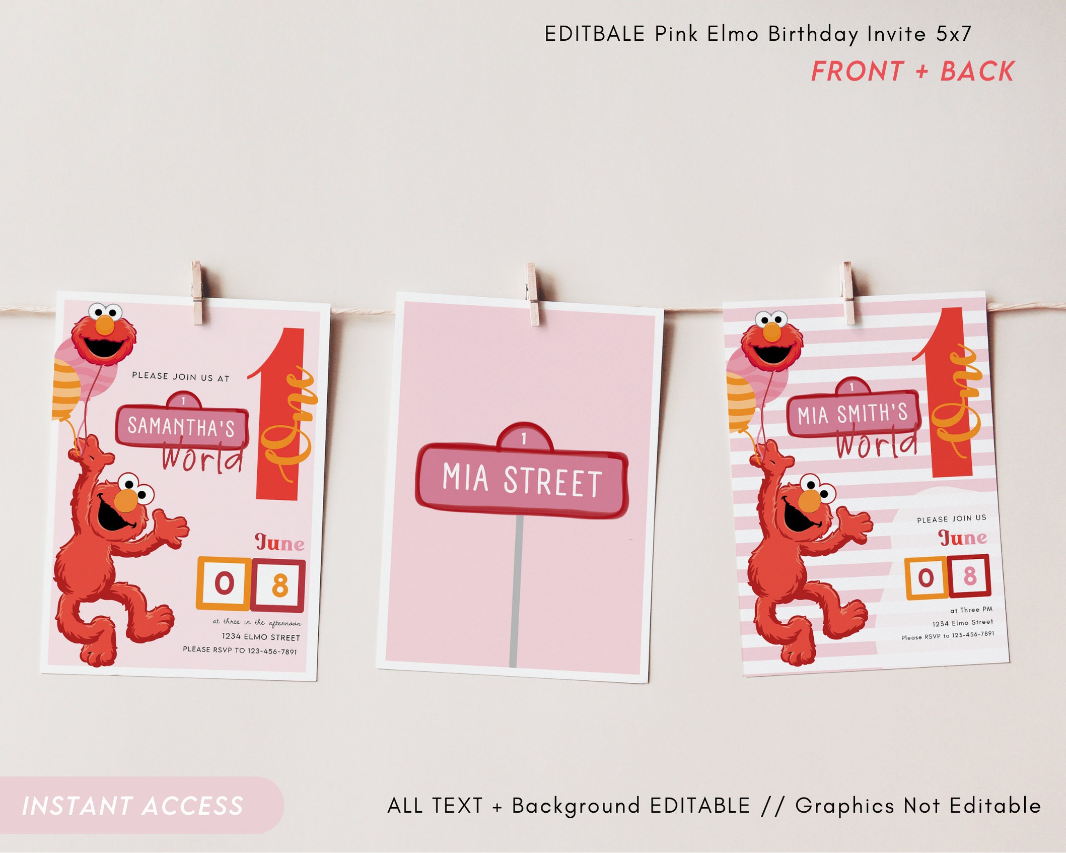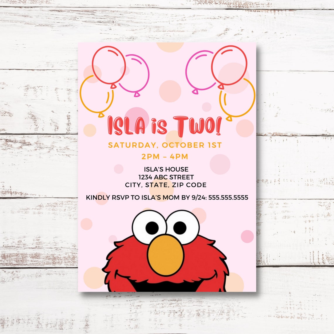 Pink Girly Elmo 1st 2nd Birthday Party Invitation Modern 5X7 - Etsy