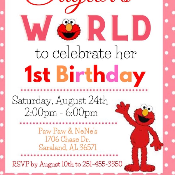 Sesame Street Elmo Birthday Invitation Boy & Girl Version - Any Age ...