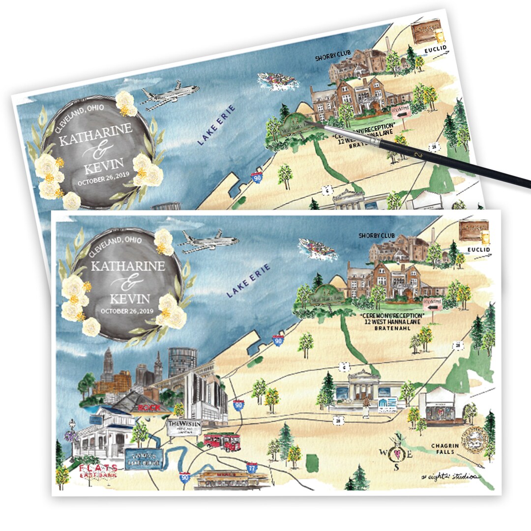 Custom Wedding Map Illustration With 2 Venues Destination Wedding ...