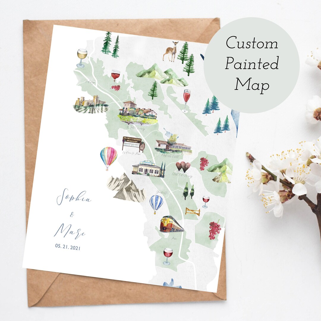 Custom Wedding Map Watercolor Wedding Map, UNIQUE Wedding Map ...