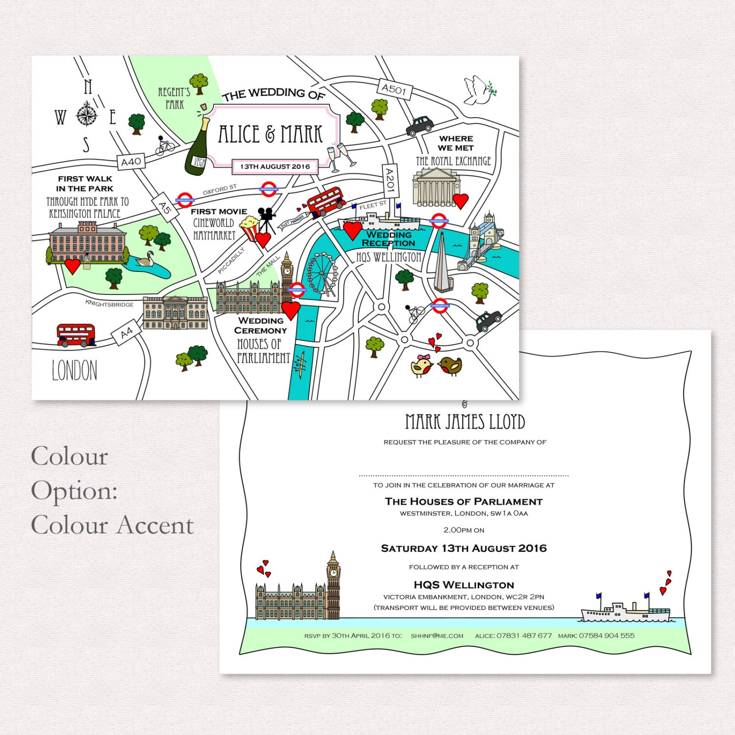 Custom Map Wedding Invitation or Info Card Full Colour - Etsy | Custom ...