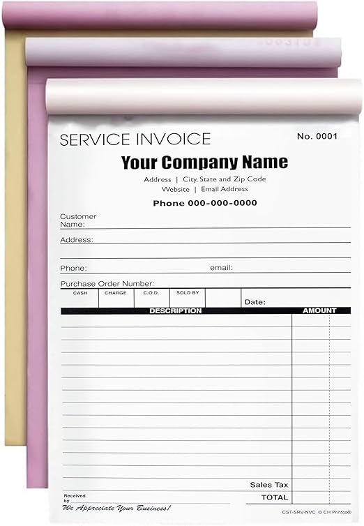 Amazon.com : Custom Carbonless Invoice Form Books 8.5 x 11 Inches - NCR ...