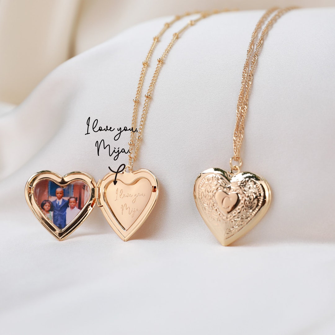 Heart Locket Necklace With Photo - Personalized Gold Locket, Gifts for ...