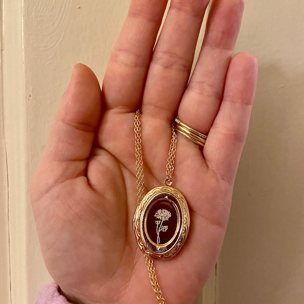 Custom Photo Locket Necklace: Engraved Birth Flower, Non-tarnish - Etsy